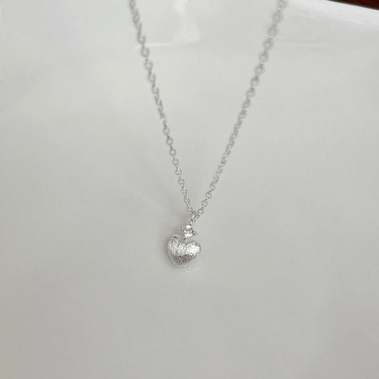 Novie Matte Heart Pendant with Zirconia Necklace