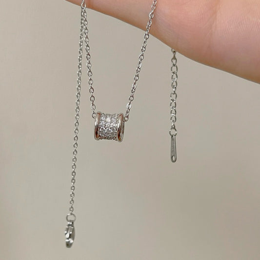 Ruby Barrel Slider Pendant with White Cubic Zirconia Necklace