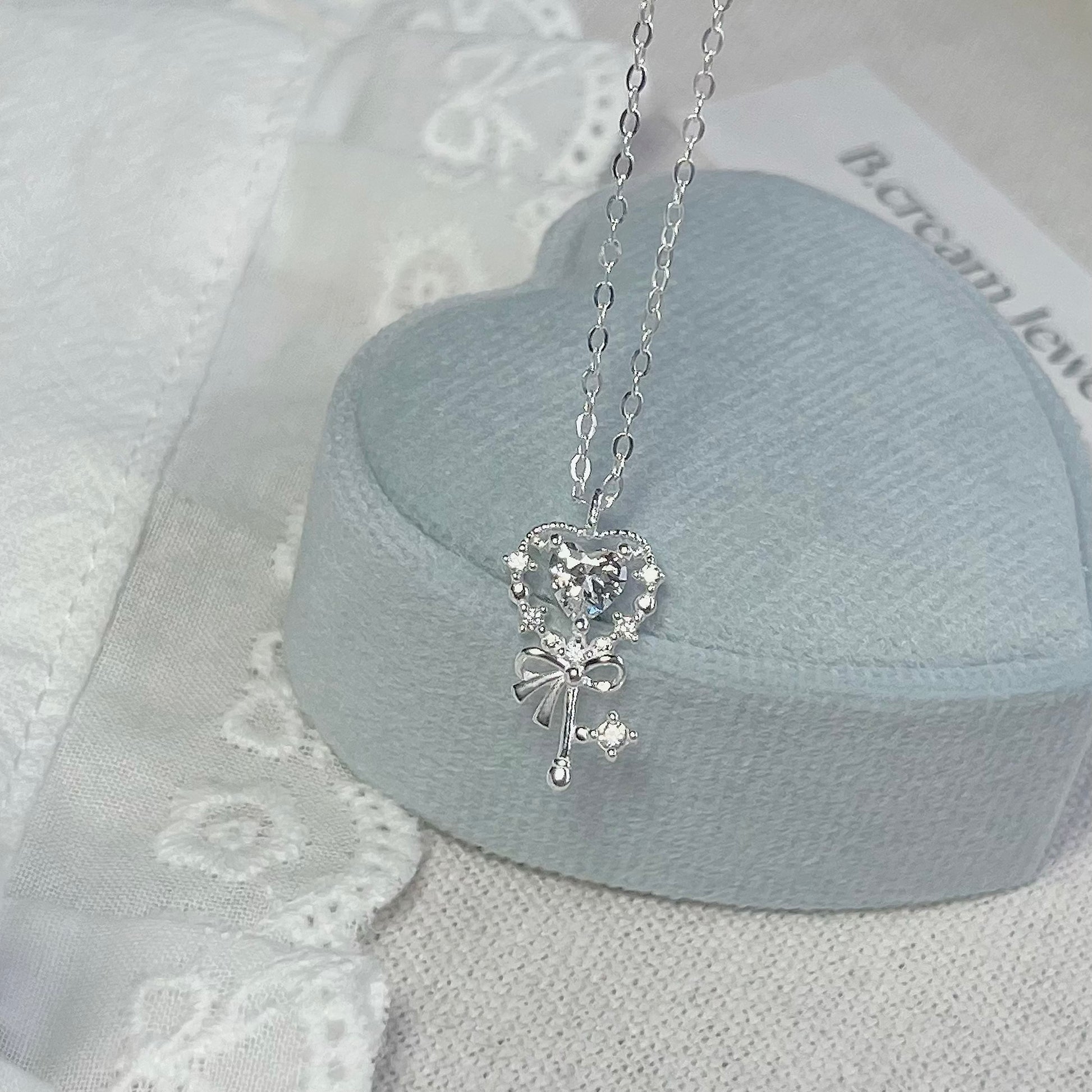 Unlock a little magic with this Heart Key Pendant. Featuring a sparkling heart-cut stone, delicate stars, and a dainty bow, it's the perfect romantic piece for everyday wear.