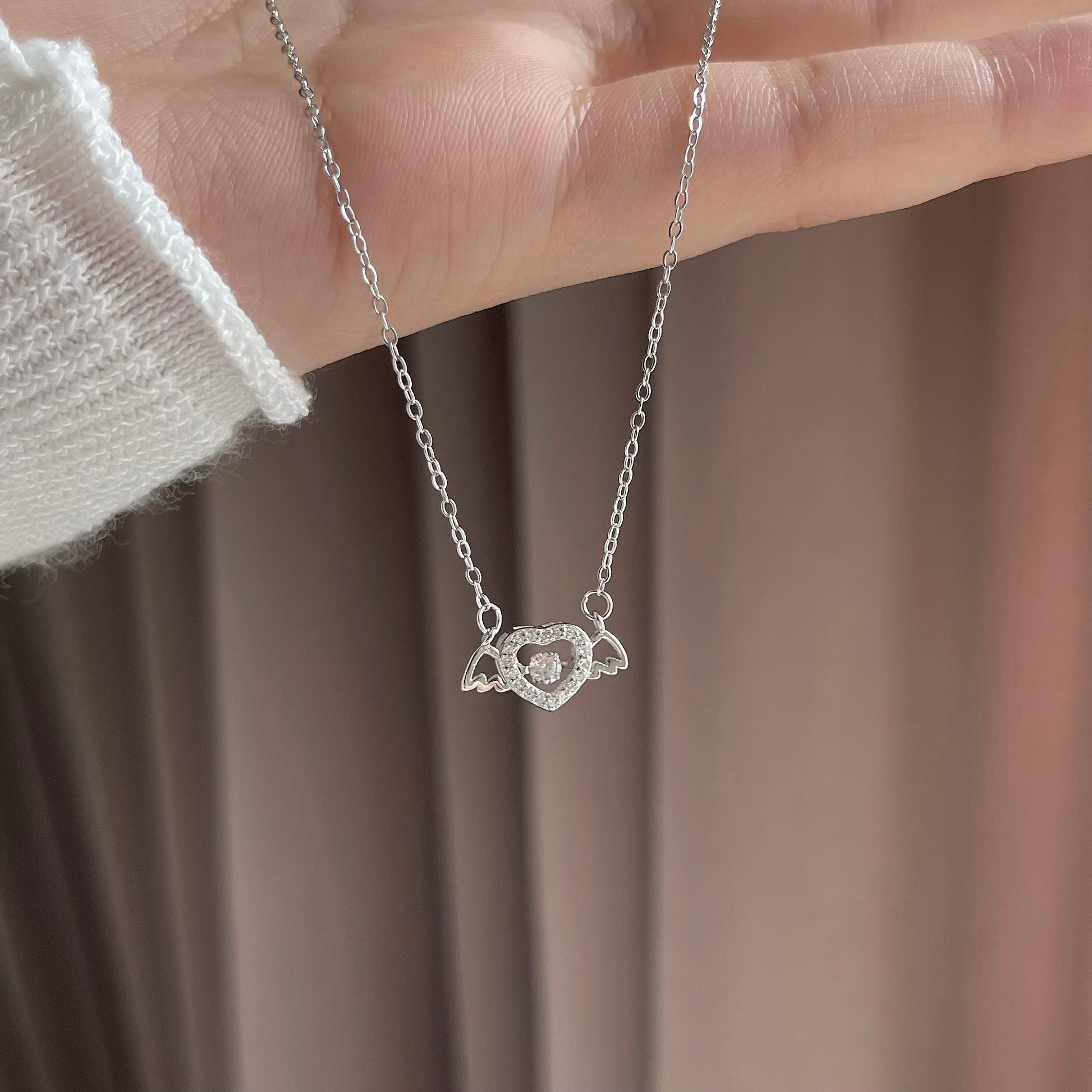Jolene Dancing Diamond Winged Heart Pendant Necklace